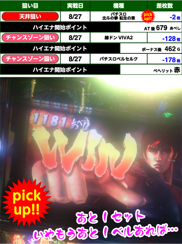 最近というか、さらにだけど「パチスロ北斗の拳 転生の章」がホントに狙いやすいと思う。