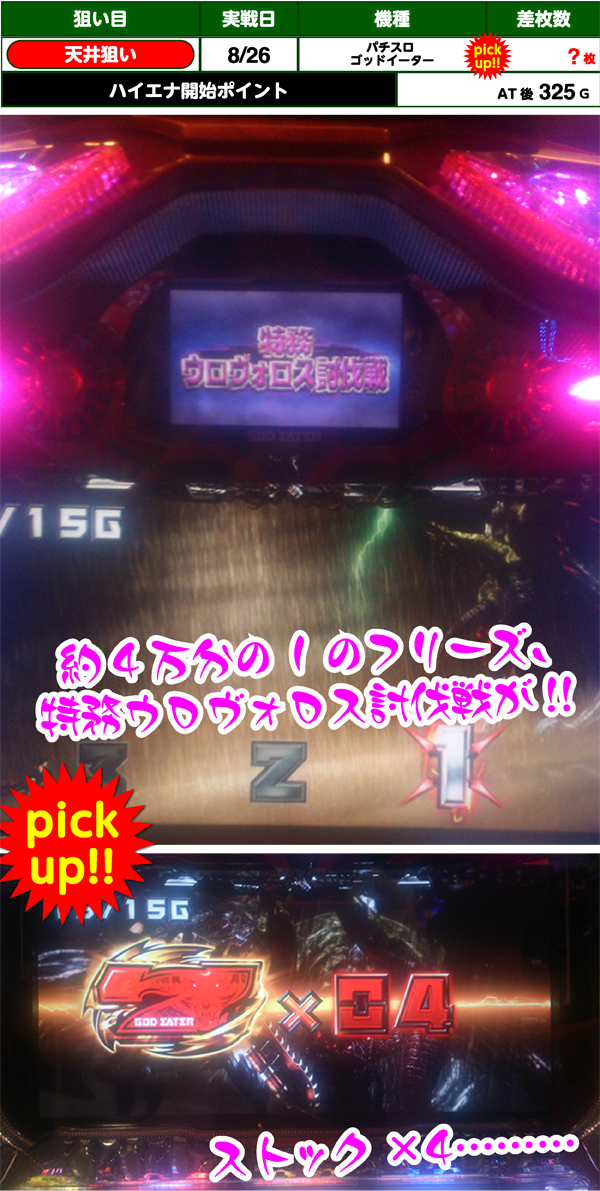 早々と終ったので、もう1台くらいならいけそうだと「パチスロ ゴッドイーター」に移動。