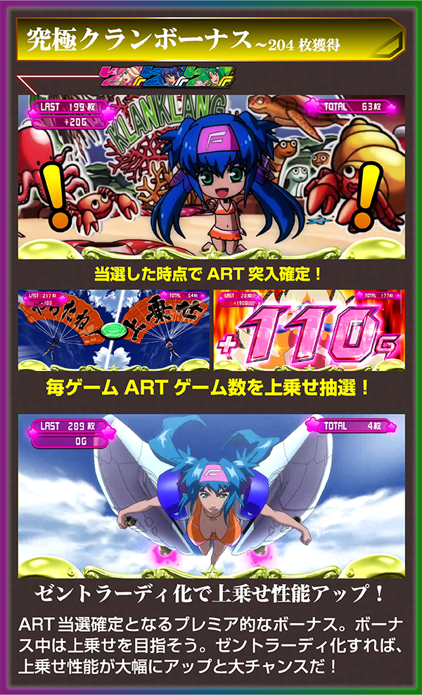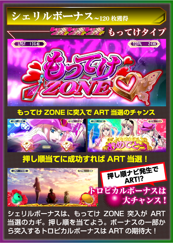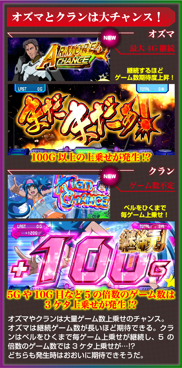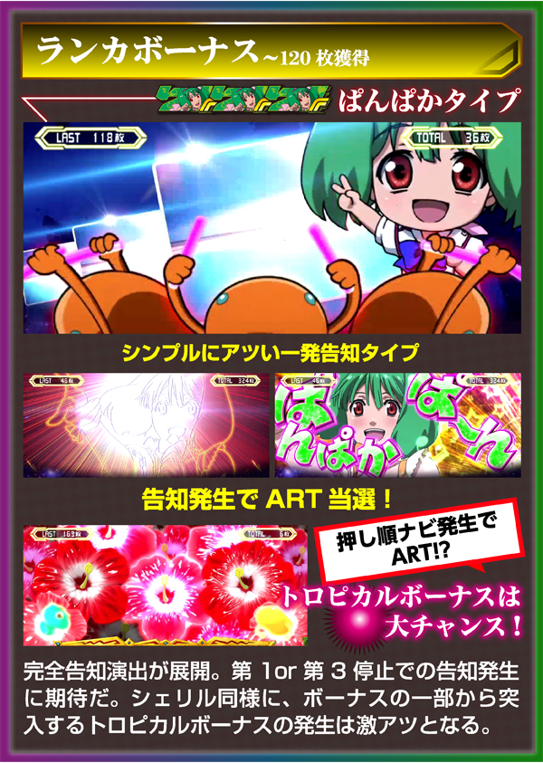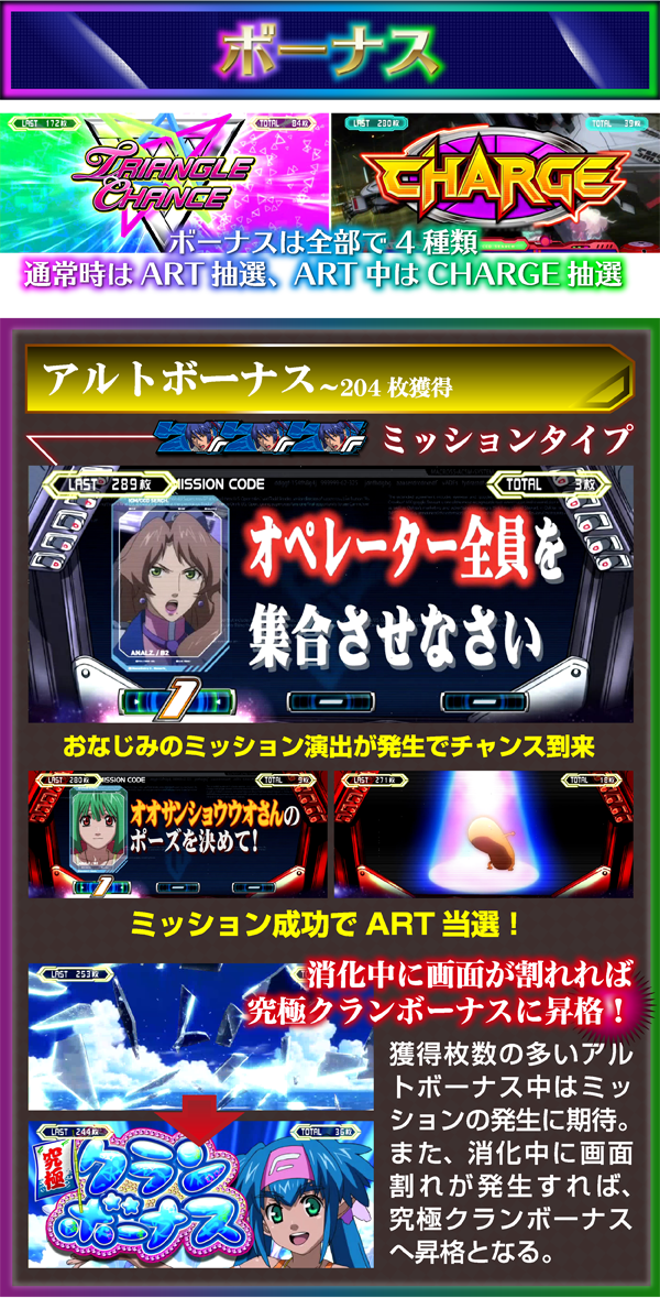 ボーナスは疑似的なものではなく、ART中にもボーナスを絡め、ゲーム数を上乗せしていくことが大量出玉獲得には必須。