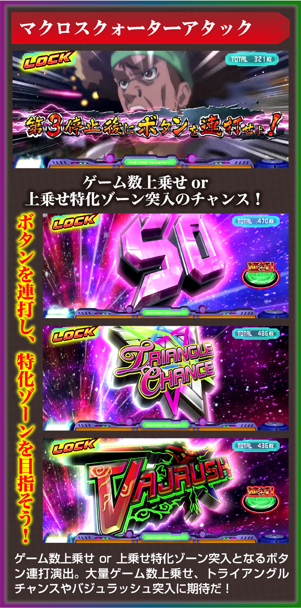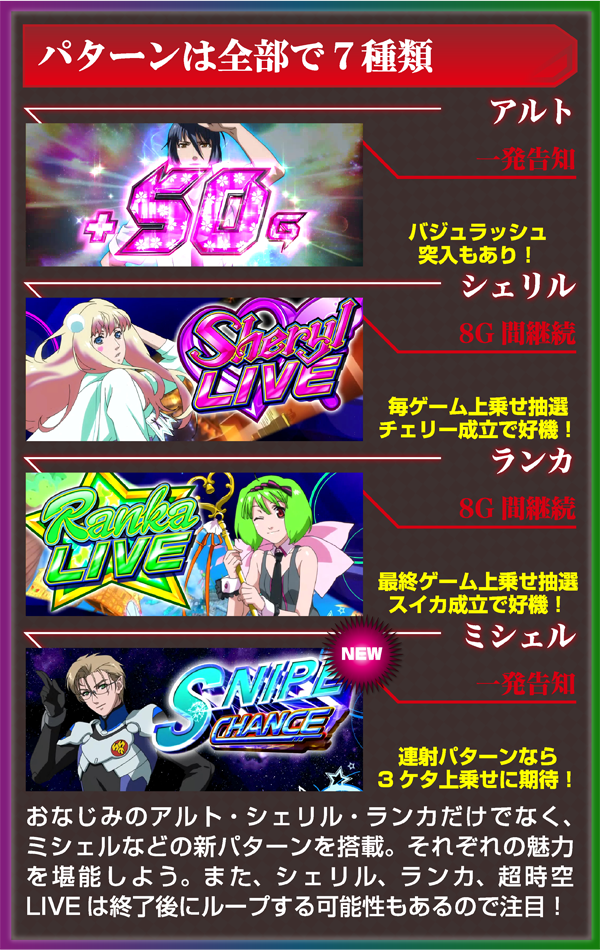 SANKYOから登場する「パチスロ マクロスフロンティア2 Bonus Live ver.」は、ボーナス獲得の喜び、ARTでの興奮、演出の楽しさが密接に交わり、魅惑の三角関係が成立している。