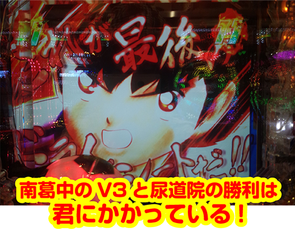 緑保留から比良戸中のリーチに発展し、南葛中が反撃を開始。赤カットインが出たものの、大してアツくもない演出ばかりでボーッとしていた。眠い目をこすったところで、ゴール!