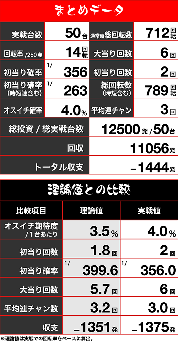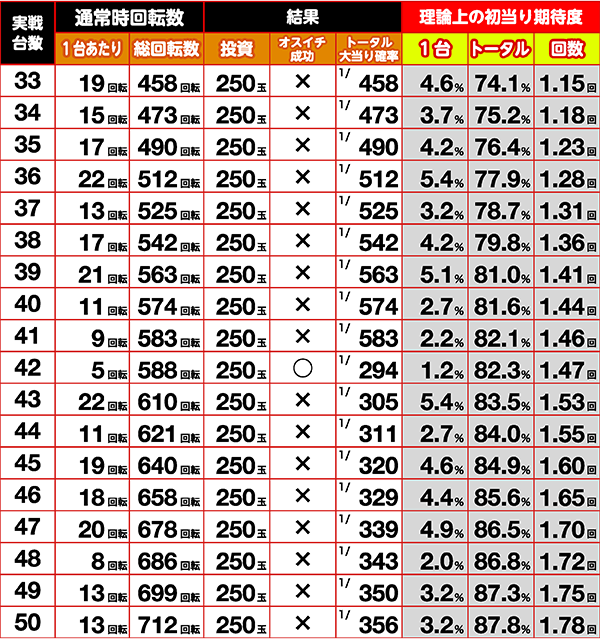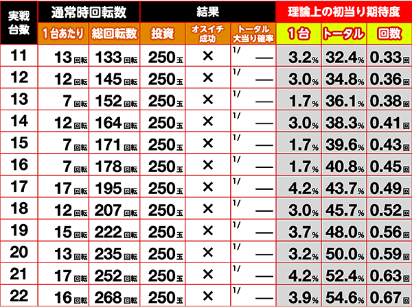 実際にオスイチは理論値を凌駕するのか…初当り確率を蓄積し徹底的に比較。