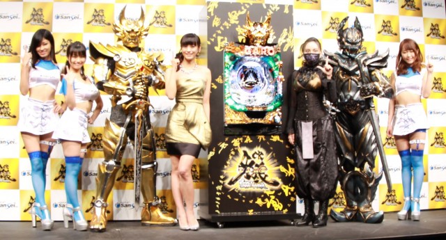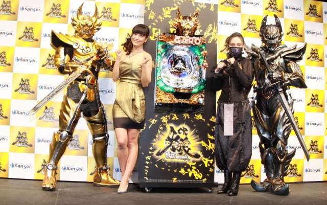 新作の『CR牙狼 魔戒ノ花』のプレス発表会に参加する喜びを語りつつも、今回の為に誂えた黒いマスクを終始つけ、メイクに3時間もかかった事を吐露していた。
