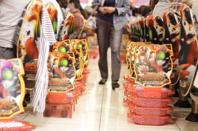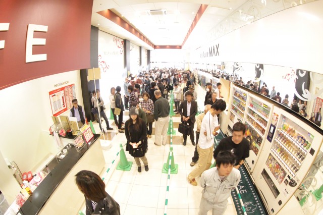 既に抽選権を持ったファンが多数再整列。 順番に抽選を行い、仮面ライダーor牙狼を打つための運試し。