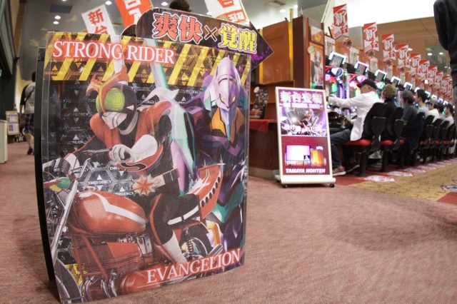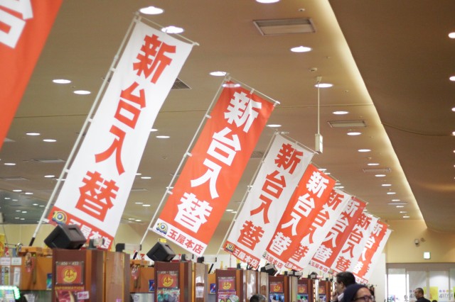 まず、この価格。店側からすればもちろん高額で、機械によっては2台分にもなろうかというこの仮面ライダーを「買わない」という選択肢もあったはずだ。 やはりそこについては、「本店」という事も踏まえ、また、商圏内の他のライバル店も意識した上での導入だったようだ。 同玉屋グループの他店でも同じように導入されているが、最も多い台数を入れた事も考えるとその意欲の高さが伝わってくる。 さらにメーカー側のプレゼンでの感想では「じっくり打つと中身がしっかりしている」という印象を受けたそうだ。