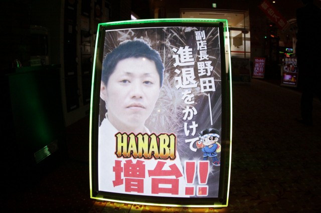 では、税込み50万円/台を超えると発売前から専ら業界の噂になっていた(パチンコ機過去最高額)仮面ライダーの購入に関して、店側はどう考えているのか? 今回は、たまたま同道させてもらった「パチンコ日報」の営業1号氏の知り合いに同グループの関係者がいたため、この玉屋本店の川頭(かわがしら)店長に話を聞くことが出来た。