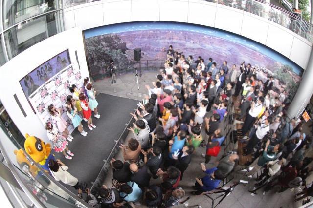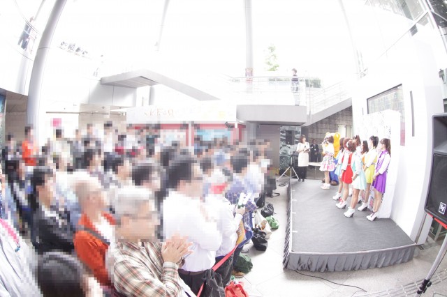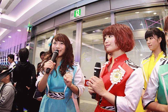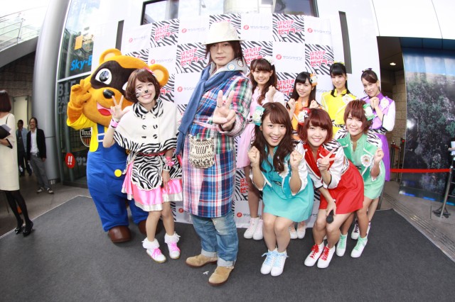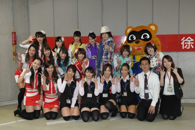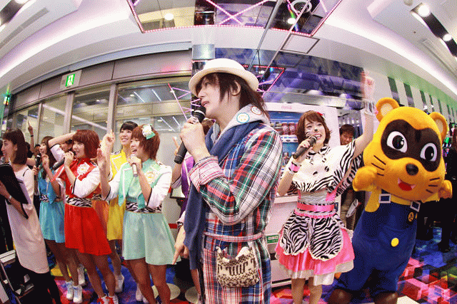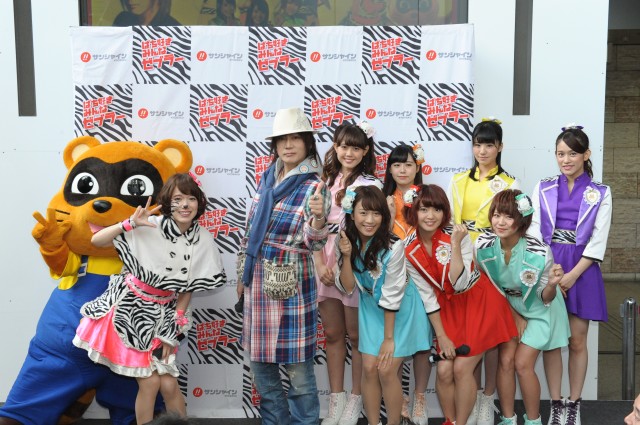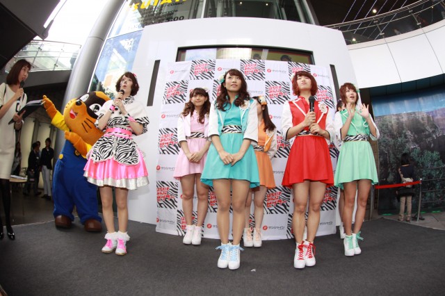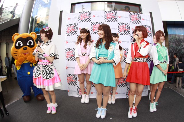 そして、11:30にステージでは『ゼブラエンジェル』の7人、そしてサンシャインKYORAKUイメージガール『ゼブラ子』ちゃんとサンシャインKYORAKUマスコットキャラクターの『たぬ吉』くんが登場。