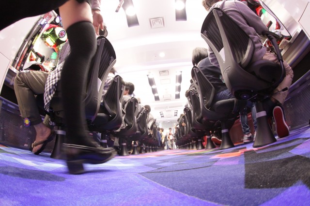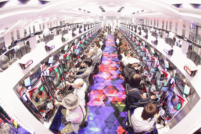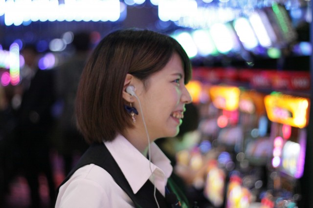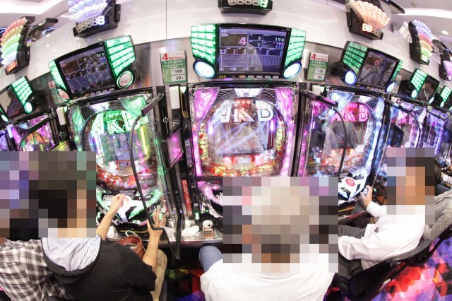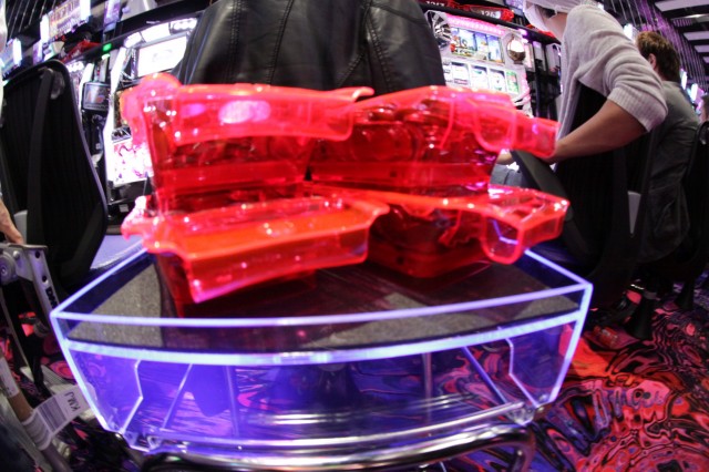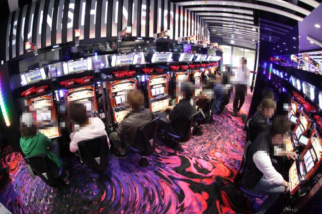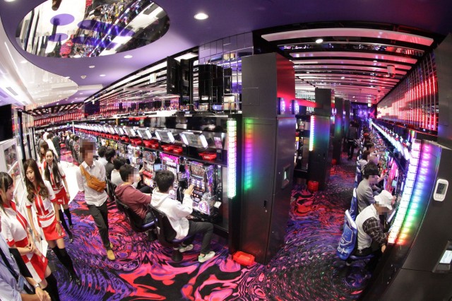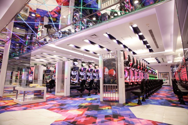 さらに、天井や壁面に設えられたミラー調の装飾は、LEDの七色の輝きを反射しパチンコ店ではなくクラブのようなテイストを醸し出す。