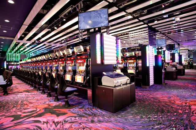 床のカーペットもパチンココーナーとはガラリと変わり、配色からその水の波紋のような幾何学模様が目を惹く。