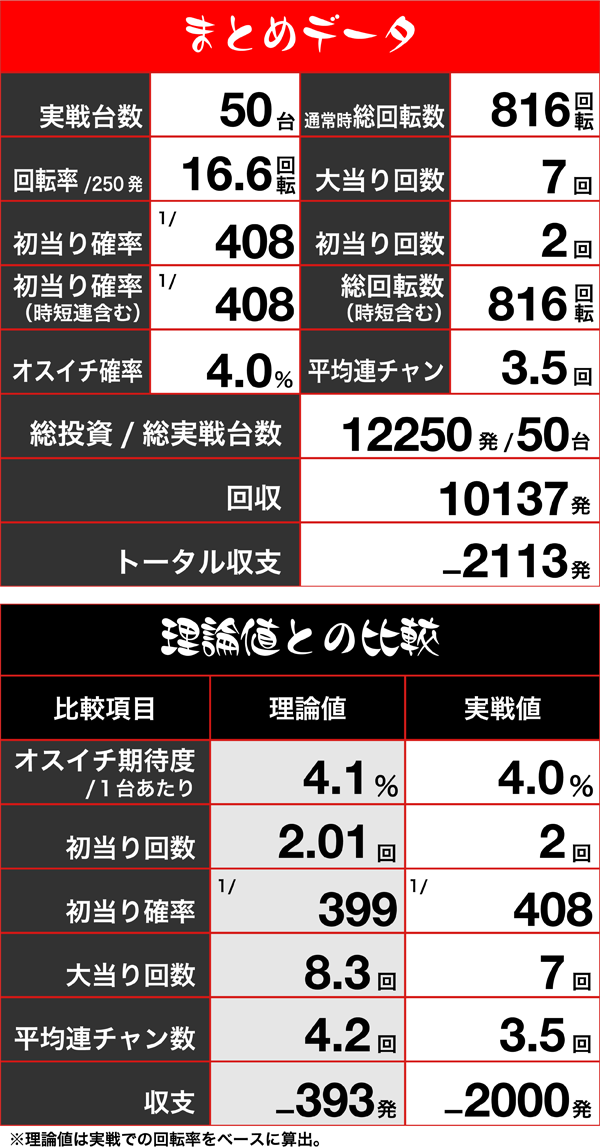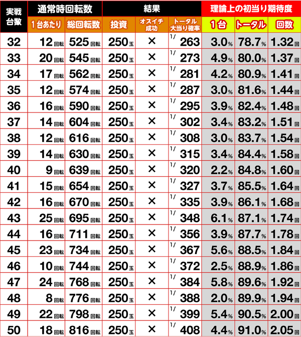 実際にオスイチは理論値を凌駕するのか…初当り確率を蓄積し徹底的に比較。
