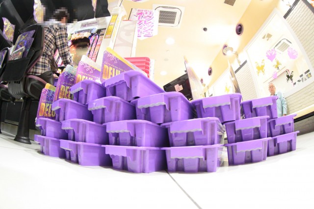 この市岡店におとずれたのは昼下がりなので、もちろん既に多くの紫とピンクの巨塔が建設ラッシュ!!