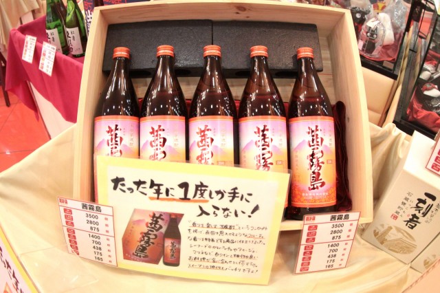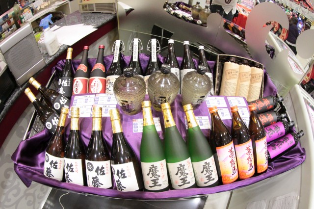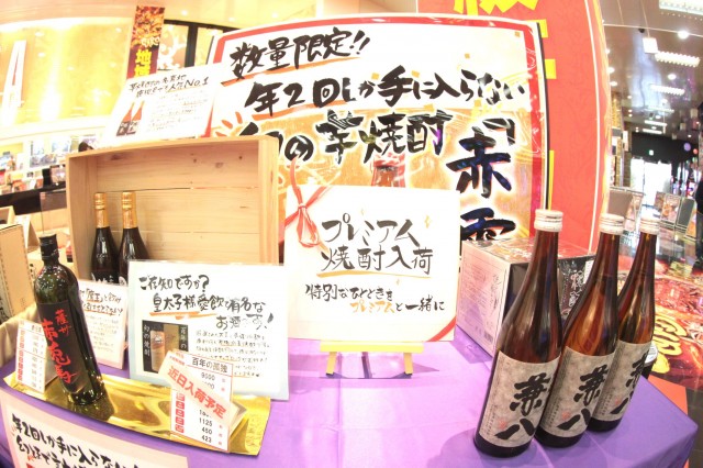 そして、賞品カウンターにはなんと年に1度しか入手できない幻の芋焼酎『茜霧島』が!他にも『赤兎馬』、『兼八』等、酒好きには堪らない銘酒のラインアップが鎮座!