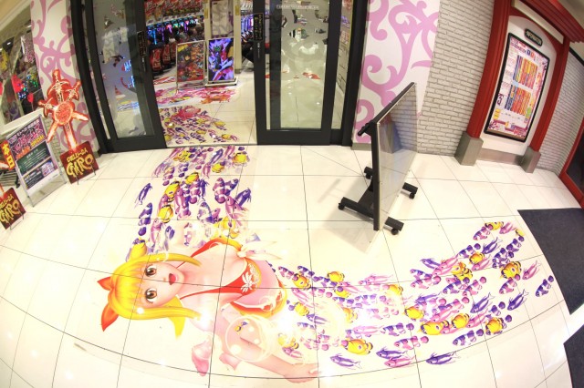 店内に足を踏み入れると『海物語』シリーズや『牙狼』への導線が床に配され、自動ドアが開いた瞬間賑やかなBGMと熱気を浴びる。