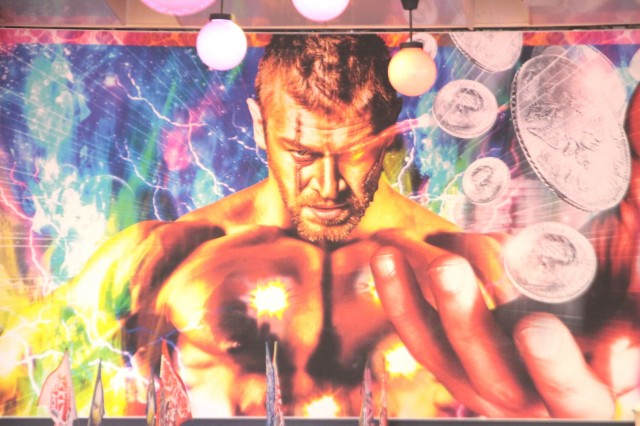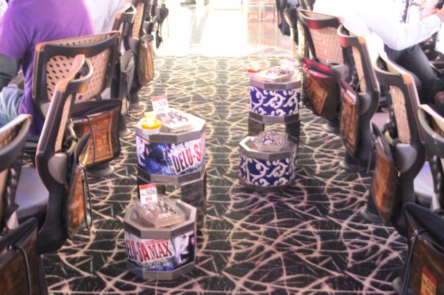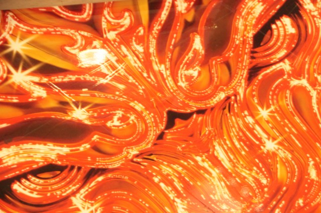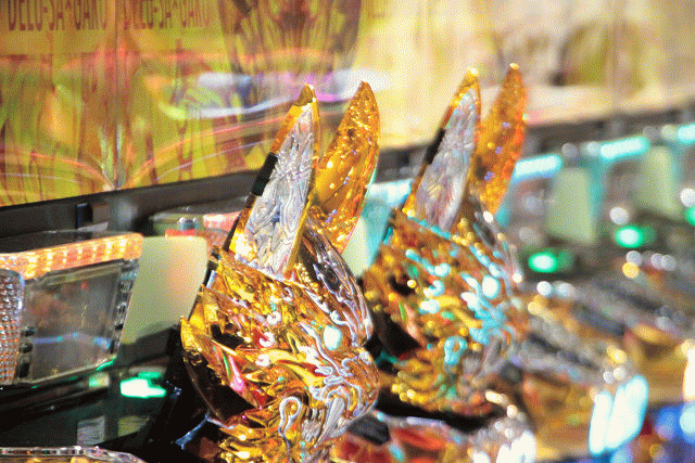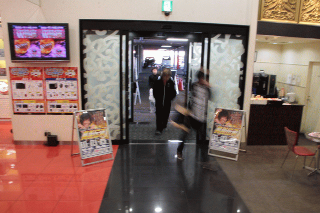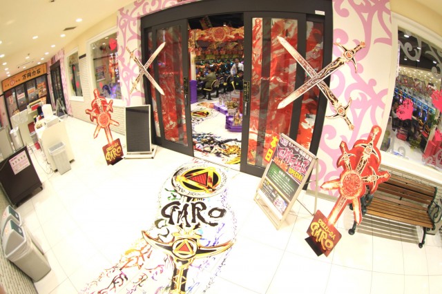 そう、エントランスをくぐると天井まで伸びた牙狼装飾の柱、アーチ、床面装飾と金と赤の牙狼一色。