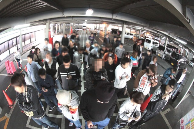 朝一、同店は10:00オープンとなり、抽選時間は9:30からスタート。再整列の9:50には同じ敷地内の立体駐車場に集まった人数はざっと100人。オープンと共に店内に入店する様は、足取りも軽く「狙い台」目指してまっしぐら!