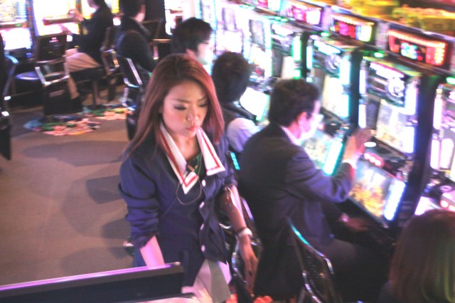 メダル補給に、ジェッタ―流し、空き台清掃と目まぐるしく動く、動く、動き回る!