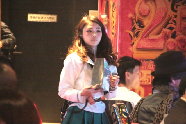 と、そこにはカワイイ女の子が。同店でバリバリ元気に働いているプラチナムガールを発見!キビキビと働く姿に目が釘付けになっていると次々に赤や黄色、ピンクの巨塔が行く手を阻む!