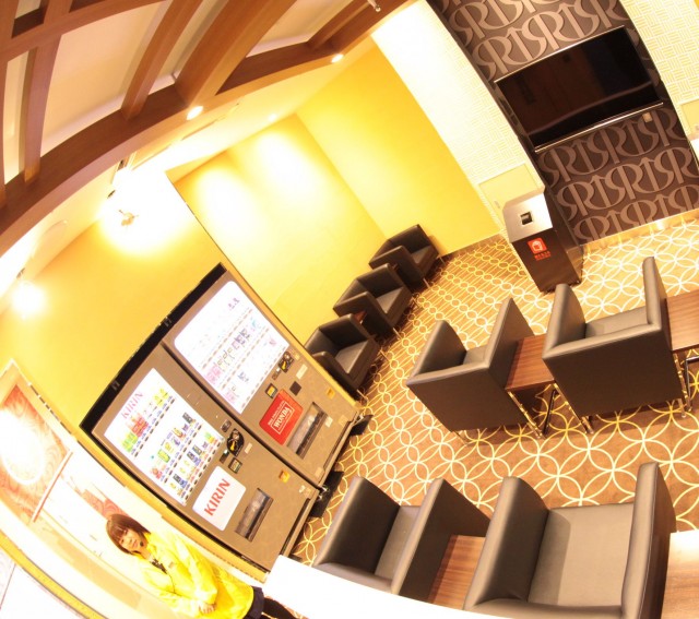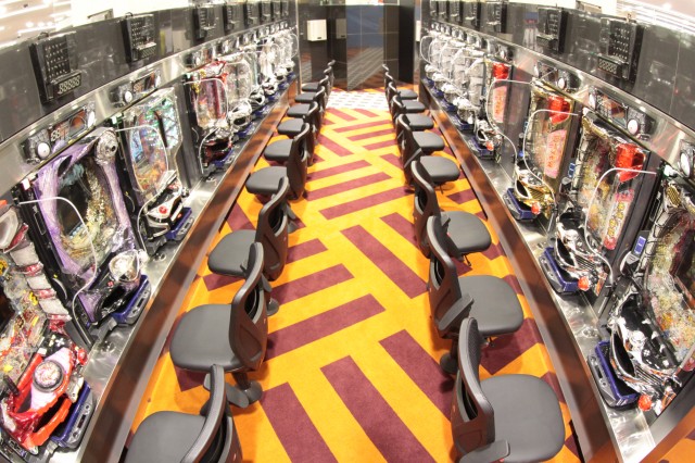 関係者に聞いてみるとパチンコで160mm、パチスロで200mmと都心の店舗としてはかなりゆったりとしたスペースを確保し、足元にも余裕を持たせたという事で、椅子の快適性と合わせても長時間「遊技したくなる」店づくりをしているようだ。