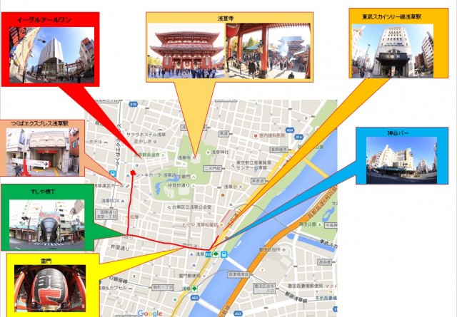 スカイツリーライン「浅草」駅からは、神谷バーを右手に曲がり雷門通に歩く!