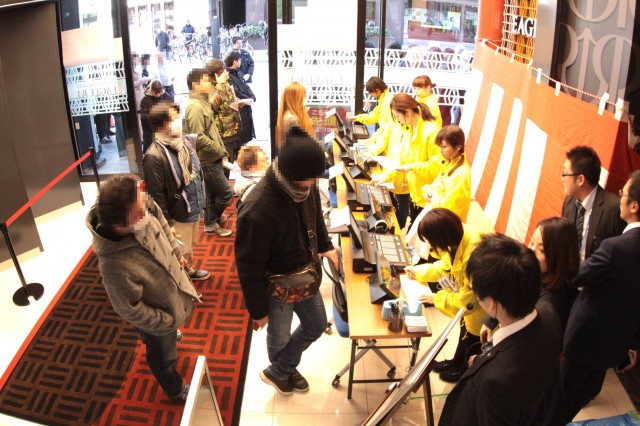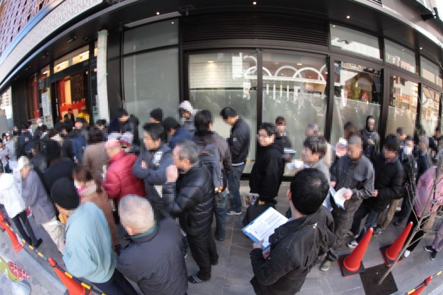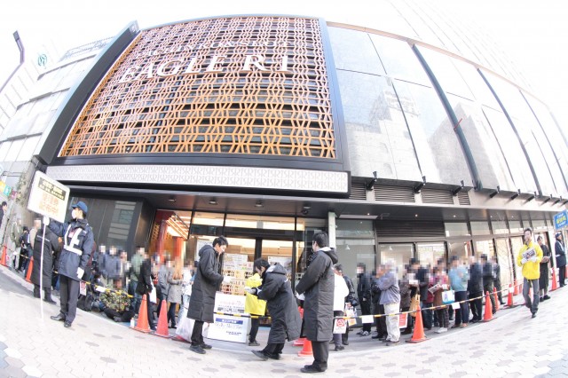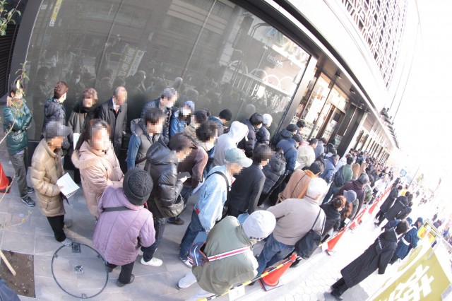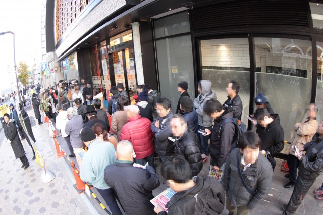 抽選を目指してまっすぐに店舗へ歩み寄るファンも先客の多さに驚き、はたまた通勤途中の老若男女もその長い列にスタッフぅに何事か尋ねる姿もあちらこちらで見受けられる。