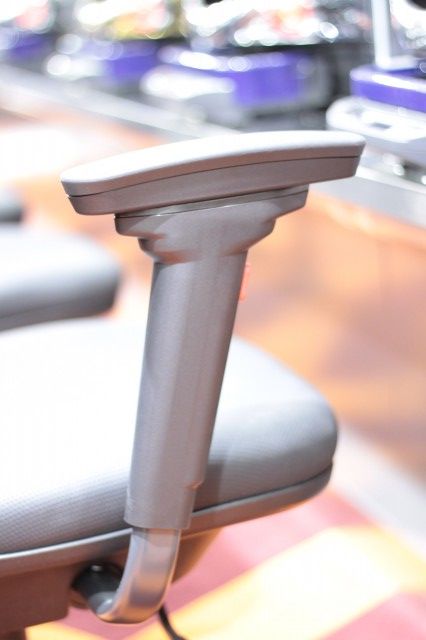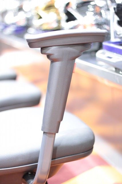 特筆すべきは、その腕置き。前後に可動するだけではなく、なんと高さも5段階まで調節可能となっており、座面の高さ調整と合わせてファンの体格に絶妙な調整が可能となっている。