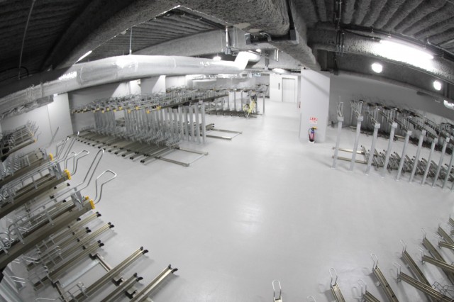 同店には約300台を収容可能な屋内駐輪場が3Fに設置されており、地元のファンにも喜ばしい施設を設けてある。