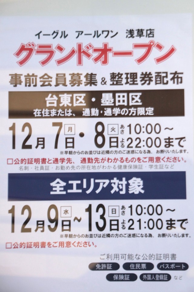 怒涛の快進撃の話を聞いたからには、12月17日(木)の『イーグルR-1浅草店』のオープンを見逃す手はない!!
