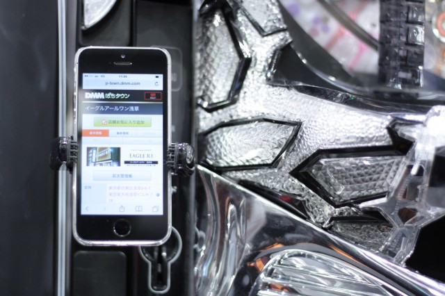 そして店内の島については、残念ながらこの日完全に見ることは叶わなかったのだが、パチンコ島には分煙ボード、そしてケータイ・スマートフォンホルダーも設置されており、スマホで『ぱちタウン』の機種情報や動画を閲覧しながらの遊技も可能だ。![]()