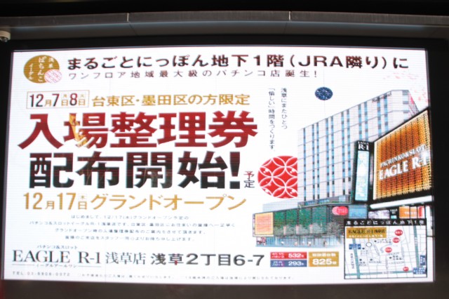 2015年12月17日(木)、北海道のイーグル、イーグルR-1、クラブイーグル等々「イーグル」の名を冠するチェーン展開を精力的に行う正栄プロジェクトの最新店舗が、いよいよ娯楽の殿堂、東京浅草に舞い降りる。