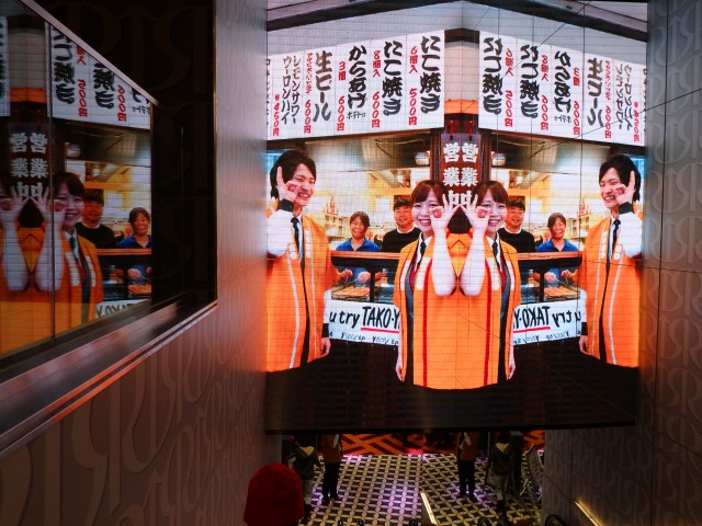 これはすぐに店内の状況を確認せねばとファンたちとともに入店すると、目の前には巨大なサイネージスクリーンが! 浅草の街や日本の四季を感じさせる美麗映像に目を奪われます。