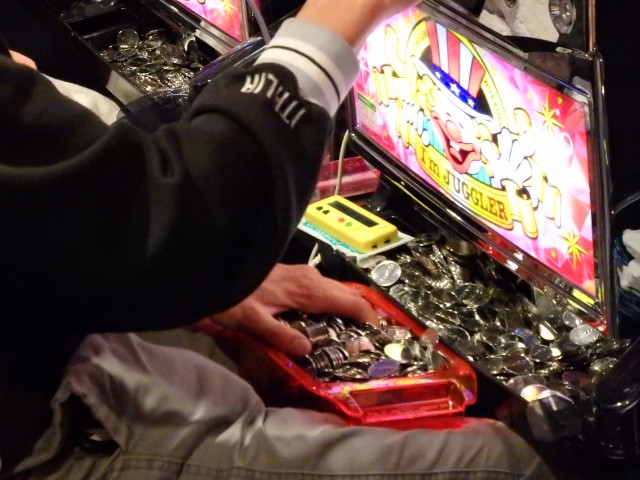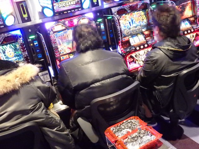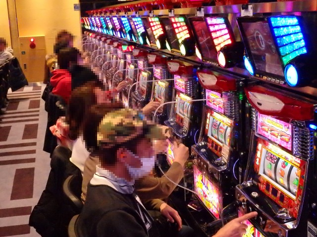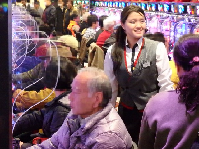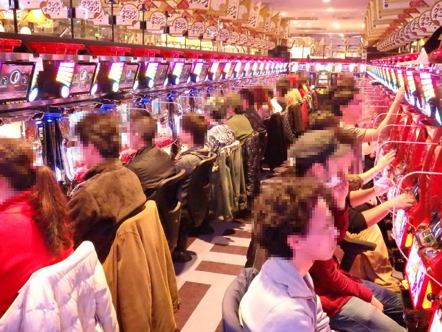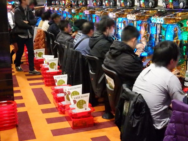 整理券を持つファンの入場後も、続々と一般入場者が押し寄せてきます。オープン15分前には探さないと空き台が見つからないような状態で、中には焦りを交えた表情で通路を回遊するファンの姿も。