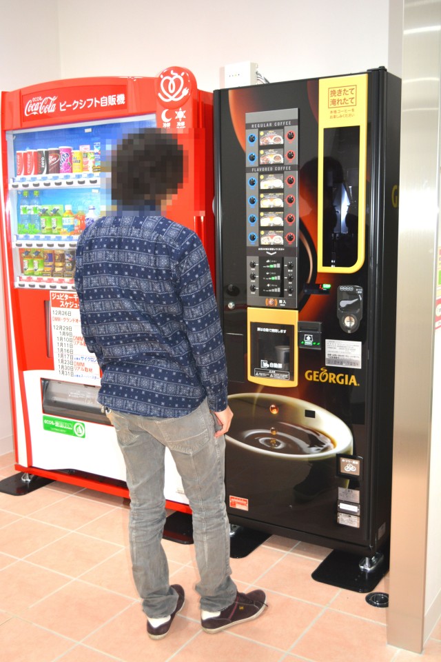 勝負につかれたときは、ドリンクで一息。自動販売機にあるドリンクは全て100円で提供されており、挽きたての美味しいコーヒーも手軽に楽しめる。なんでもこのコーヒー自販機、系列店の常連ファンがコーヒー好きで、よく「挽きたてのコーヒーが飲みたい!」と言っていたことがヒントになって導入が決まったんだとか。