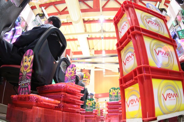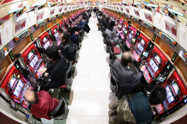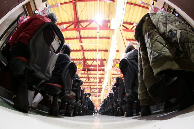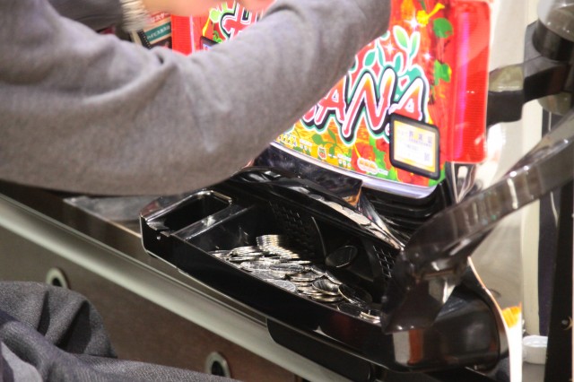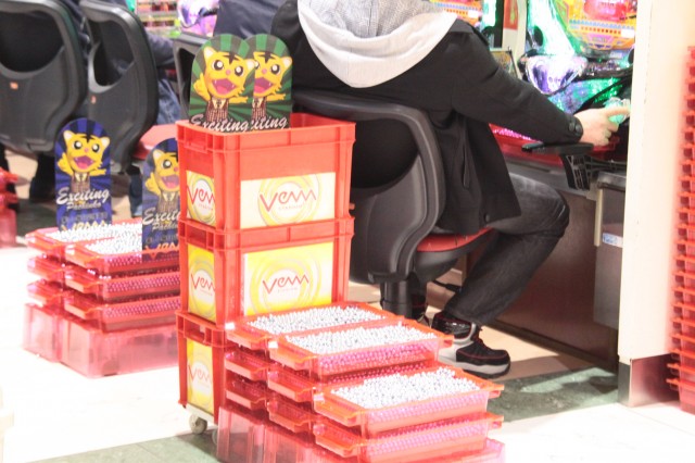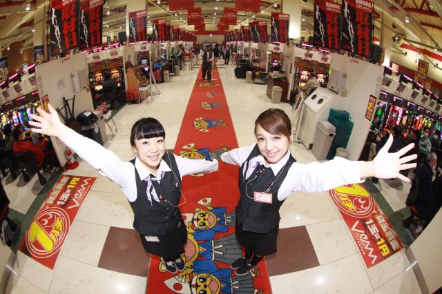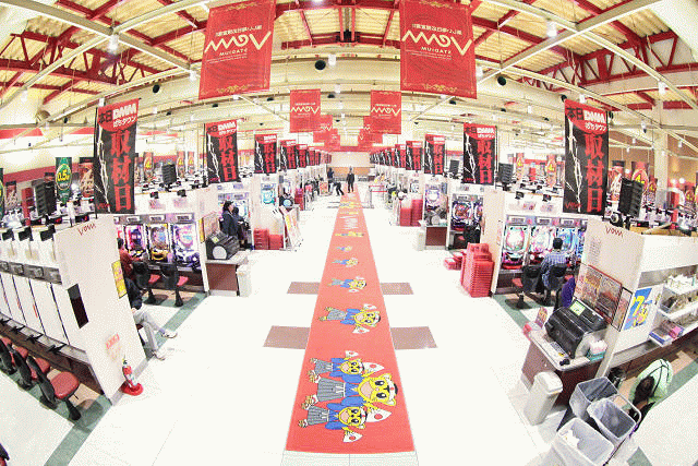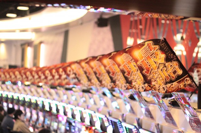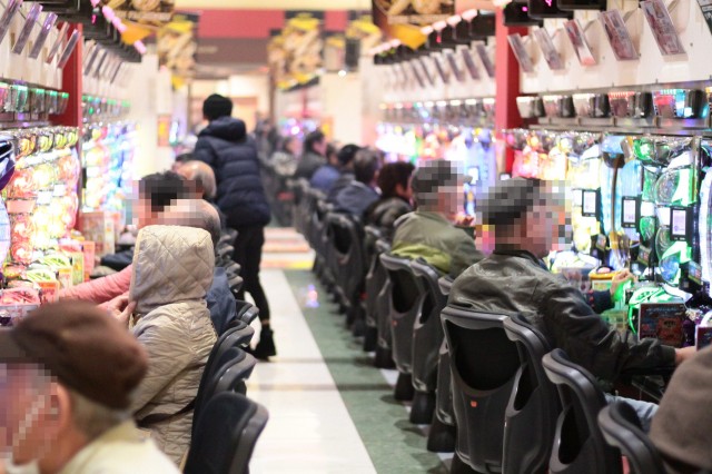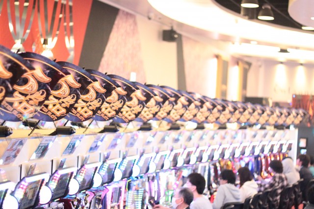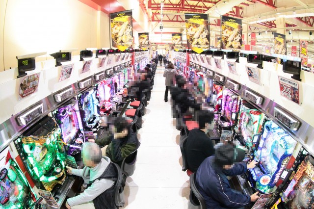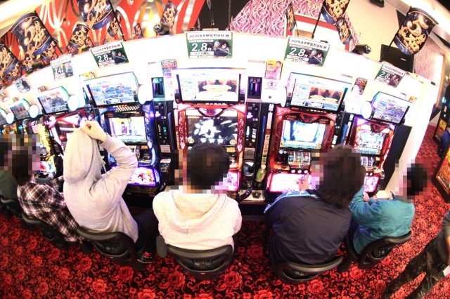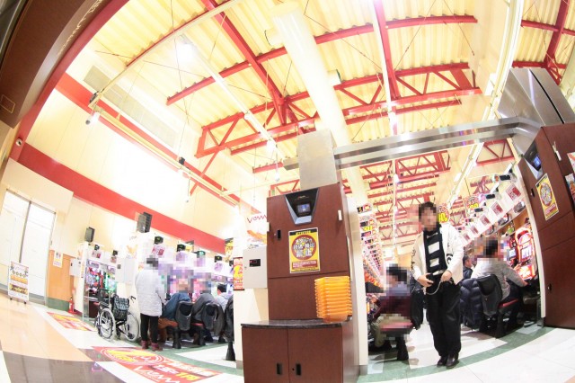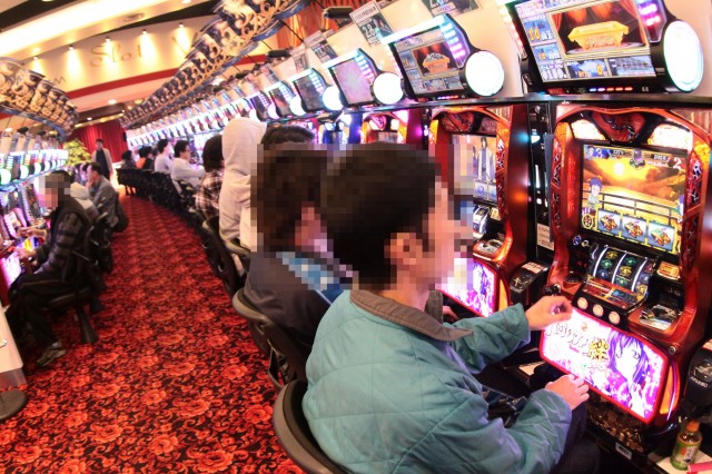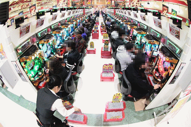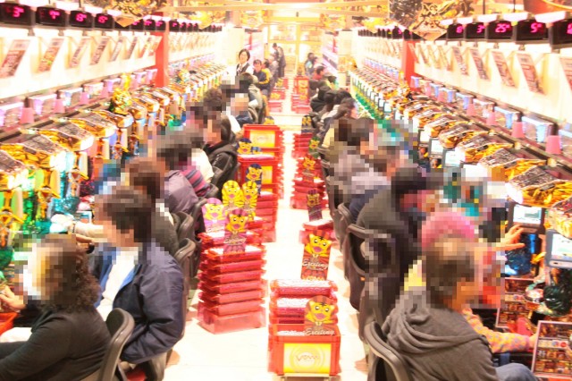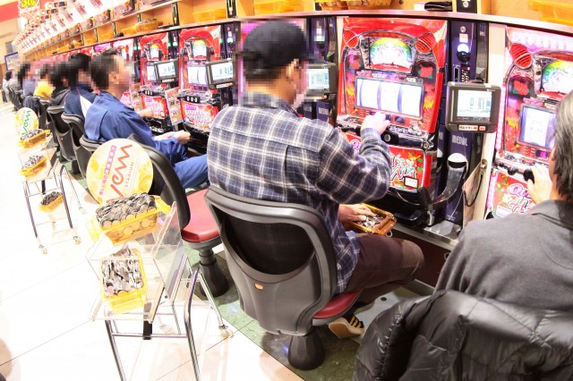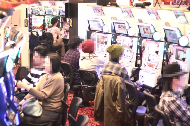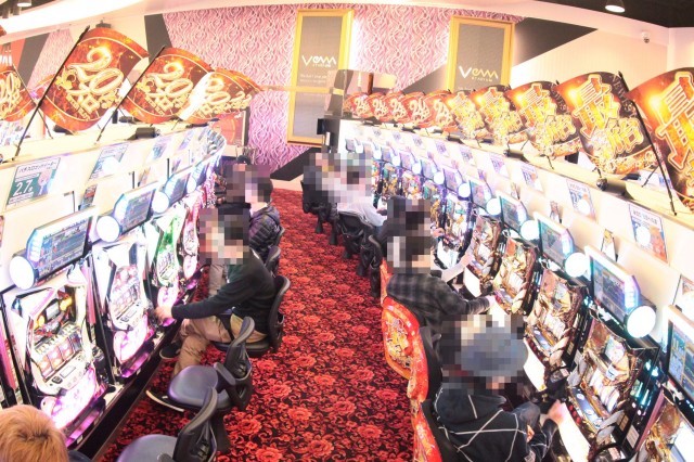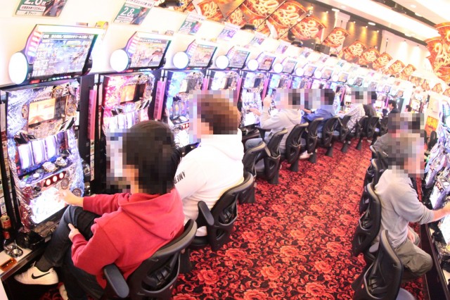 店内はパチンコもスロットも盛況でファンは一心不乱に台に向き合う。