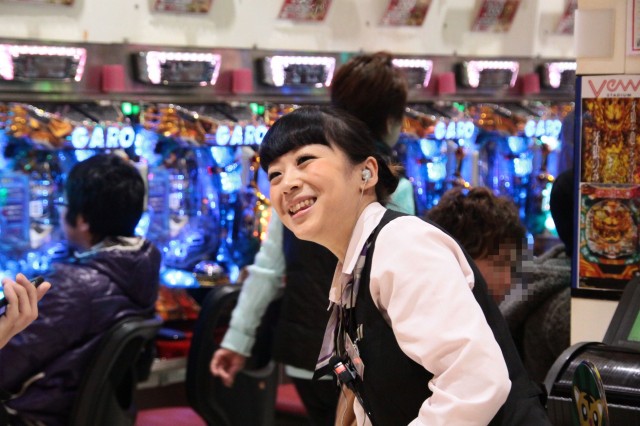 問1:初心者、年配のお客様には特にわかりやすく、丁寧に対応する事を心掛けています。また、箱に玉やメダルが多いようであればコールボタンを押す前に、こちらから声を掛けることを徹底して行っています。