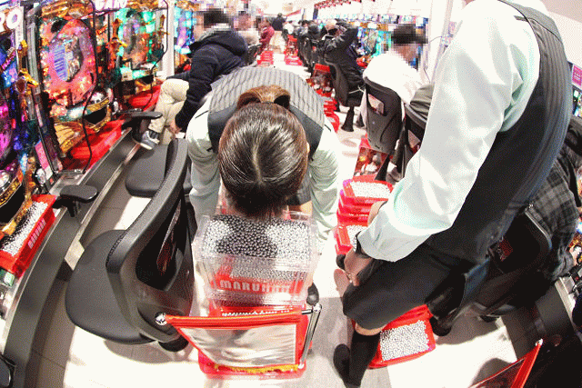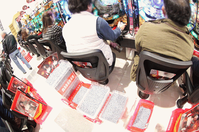 と、開店直後なのにいきなり『CR牙狼魔戒ノ花』で、「パーフェクト牙狼フェイス」がいきり立つ!『CR海物語』シリーズでは、半魚人張りに海水につかりっぱなしのマリンちゃんが水槽内を縦横無尽に泳ぎまくる!