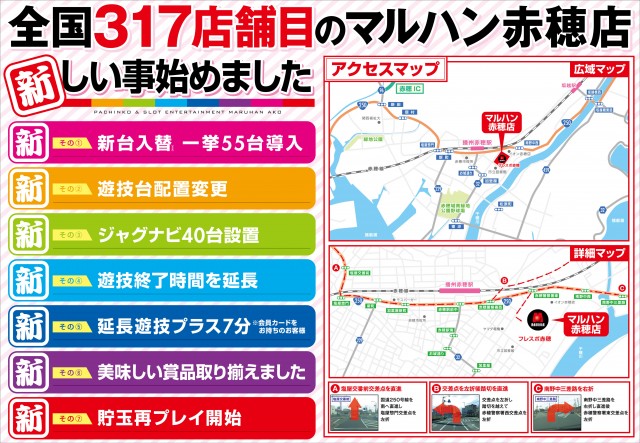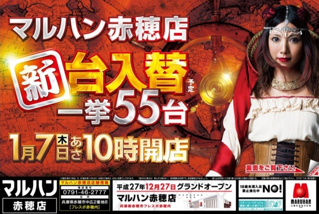 昨年末、北関東でオープンしたマルハンだが、次の317店舗目がほぼ時を同じく12月27日(日)に兵庫県赤穂市でオープンしたらしい。
