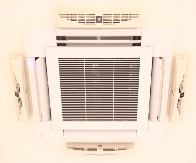 プラズマクラスターイオン発生のダクトがエアコン付近に設置されている