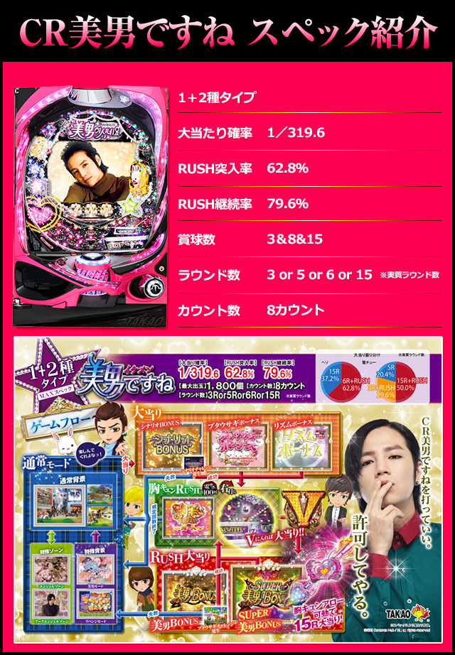 膨大な量の実写映像を高画質で楽しめる「CR美男ですね」は、パチンコファンだけではなく、ドラマ・俳優ファンをも虜にするだろう!