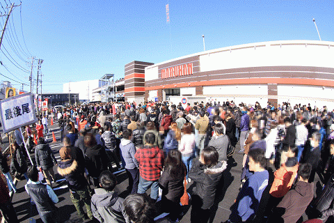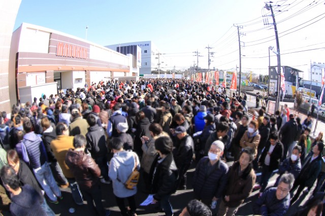 「マルハン橋本台」店の門出を祝うかのように、冬晴れに恵まれたこの日に集まったファンはおよそ1300人超。