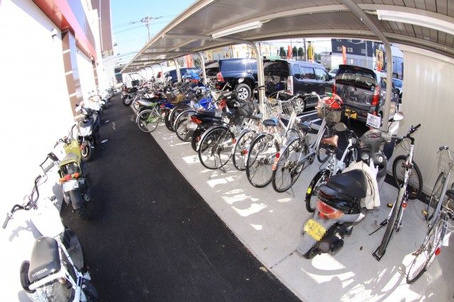 もちろん駐輪場もわずかなスペースを見つけ駐輪しているバイクや自転車も・・・。