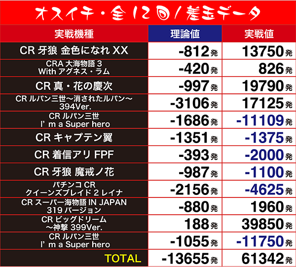 実際にオスイチは理論値を凌駕するのか…初当り確率を蓄積し徹底的に比較。