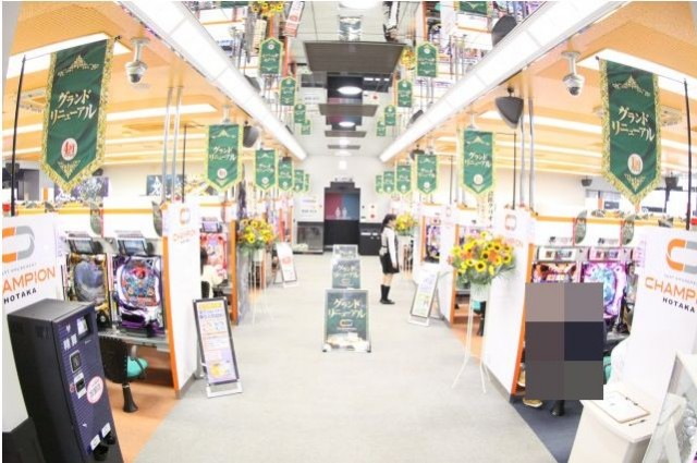 店内はパチンコ・パチスロともに各台計数機を全台標準装備し、さらにパチスロ島にはまだ市場に出ていない超大型データランプ『レボラ』も設置されるなど、ハイテク設備にリニューアル!