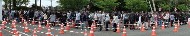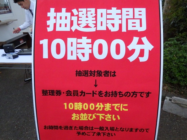 まず、平日の朝からこれだけのファンが集まっていることにもビックリですが、本当に驚くべきはこれが入場順抽選の1時間前、開店時間の3時間も前だということ! しかも皆さん、抽選を受けるための整理券をもらうべく、事前に会員登録も済ませてるんです!!