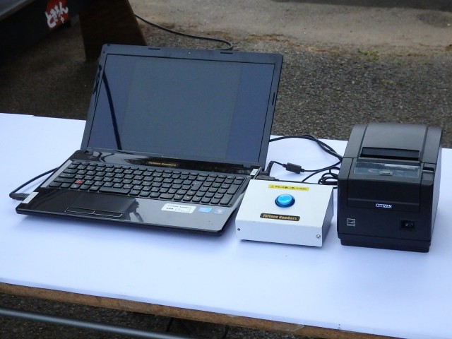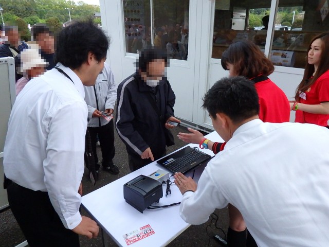 500人の運命を左右する“マッシーン”がコチラ! ボタンをポチッと押せば、すぐさま入場番号の書かれた紙がプリントアウト。人の意思の入り込む余地を与えぬデジタル&ドライなヤツです(笑)。
