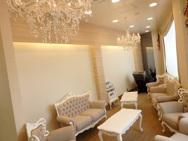 天井にはシャンデリアが2つも……! そして、他の休憩ルームとは一線を画した豪奢なソファに、奥にはマッサージチェアまで……!