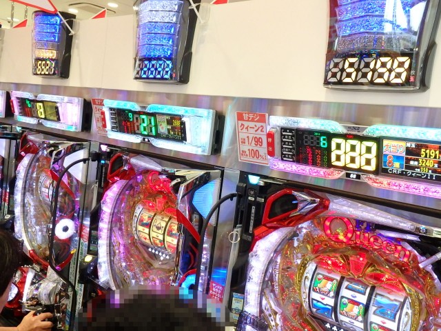 ツキがツキを呼ぶのか!? こちらでも並んで連チャン中。しかも甘デジの『CRフィーバークィーン』で早くも5千発突破とはお見事です!