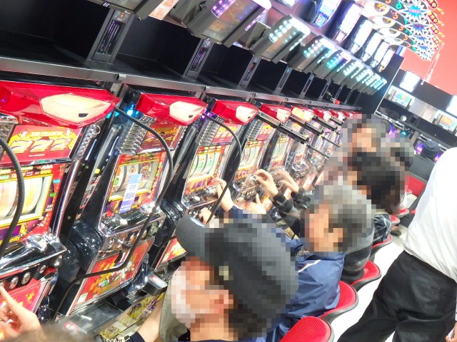 店内に戻ると、パチンコ・パチスロともにほぼ満席状態でさらにヒートアップ!