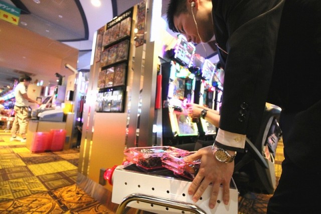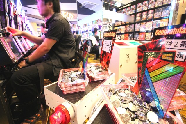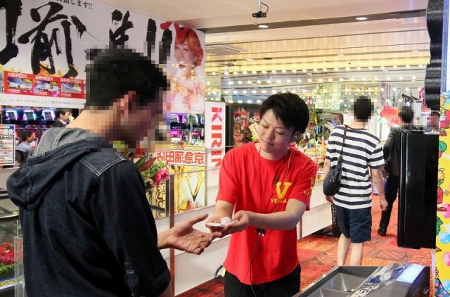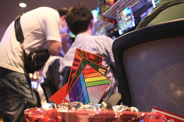 ふと、ドル箱群からカウンターに目を移すと、目に飛び込んできたのは会員カードを作っているお客さんたち。