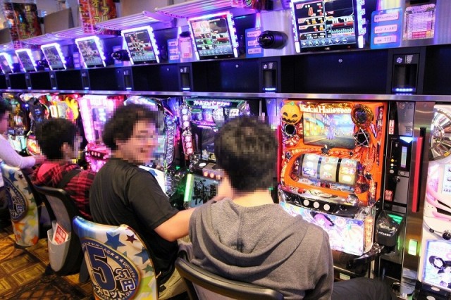カップルで仲良く談笑しながら、友人同士で大当りの喜びを分かち合いながら、と“連れスロ”で楽しんでいる人が多め!
