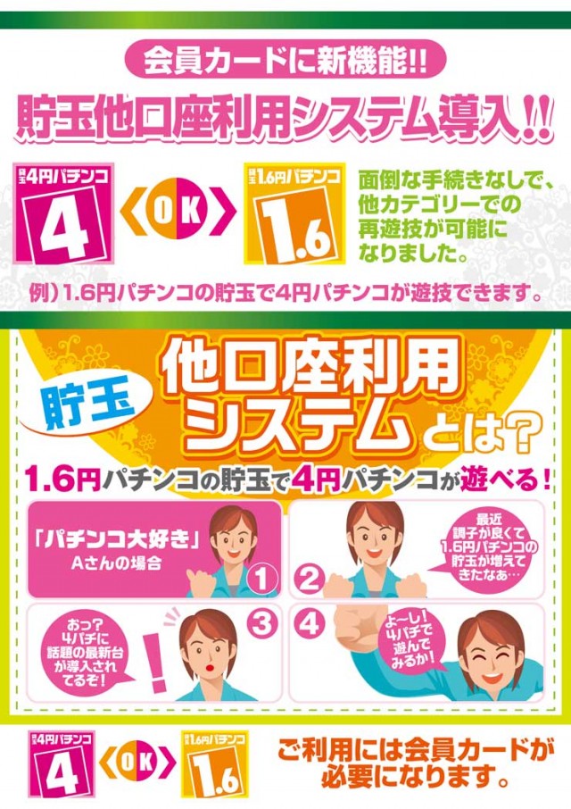 まず、大きな変更点はそれまで1.3円だったパチンココーナーを1.6円(1000円/625玉貸し)に変更したこと。